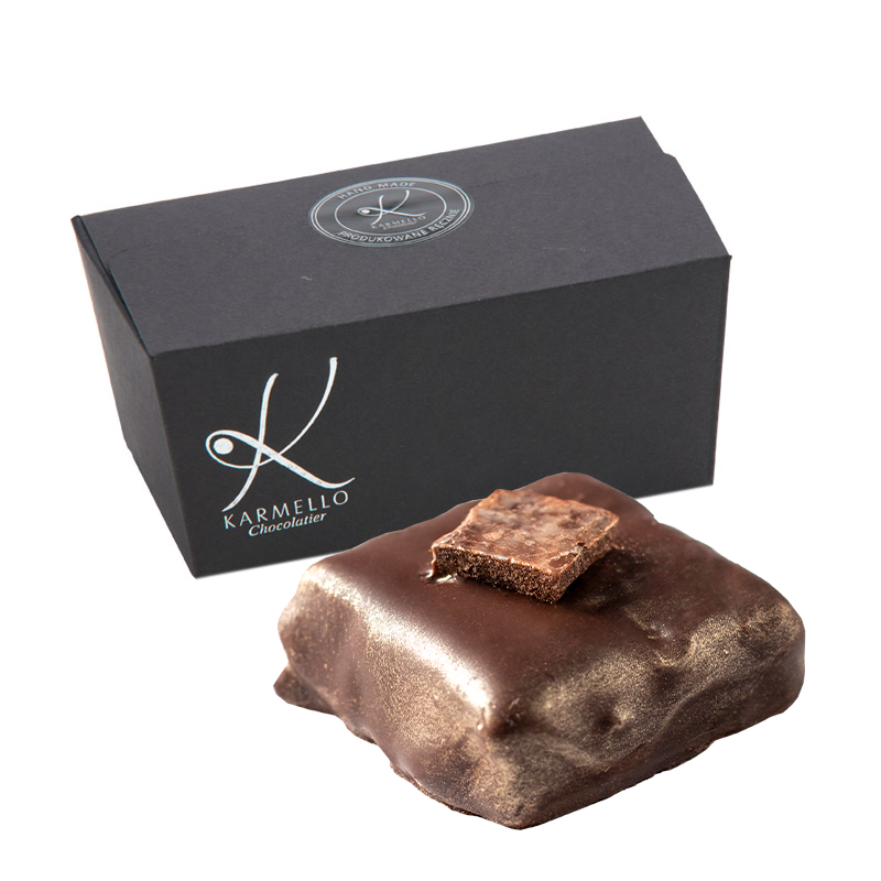 Nadzienie na bazie ciemnej czekolady, której smak urozmaicają chrupiące prażynki, ukryte w wyjątkowo delikatnej, ciemnej czekoladzie.