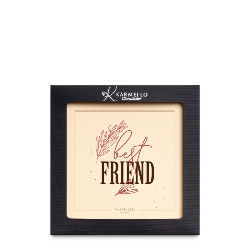 Tafla belgijskiej, białej czekolady ze słodkimi wyznaniem „Best Friend”. Czekolada idealnie sprawdzi się jako podarunek dla przyjaciela.