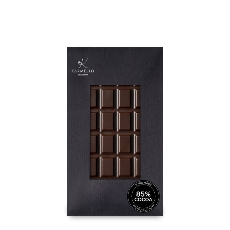 Czekolada ciemna 85% intensywna w smaku, aksamitna tabliczka dla prawdziwych koneserów gorzkiej czekolady. Zawiera 85% najwyższej jakości ziaren kakao, dzięki czemu zachwyca głębokim aromatem i delikatną nutą goryczki. Idealna jako elegancka przekąska lub dodatek do deserów i wypieków.