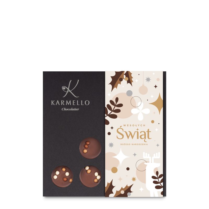 Idealne połączenie aksamitnego karmelu i belgijskiej czekolady to duet, który wprowadza w magiczny nastrój Świąt. Każda czekoladka to mała chwila słodyczy, która rozgrzewa serce i wywołuje uśmiech. Zapakowane w eleganckie, świąteczne pudełko – doskonały sposób, by obdarować bliskich odrobiną czekoladowej radości.