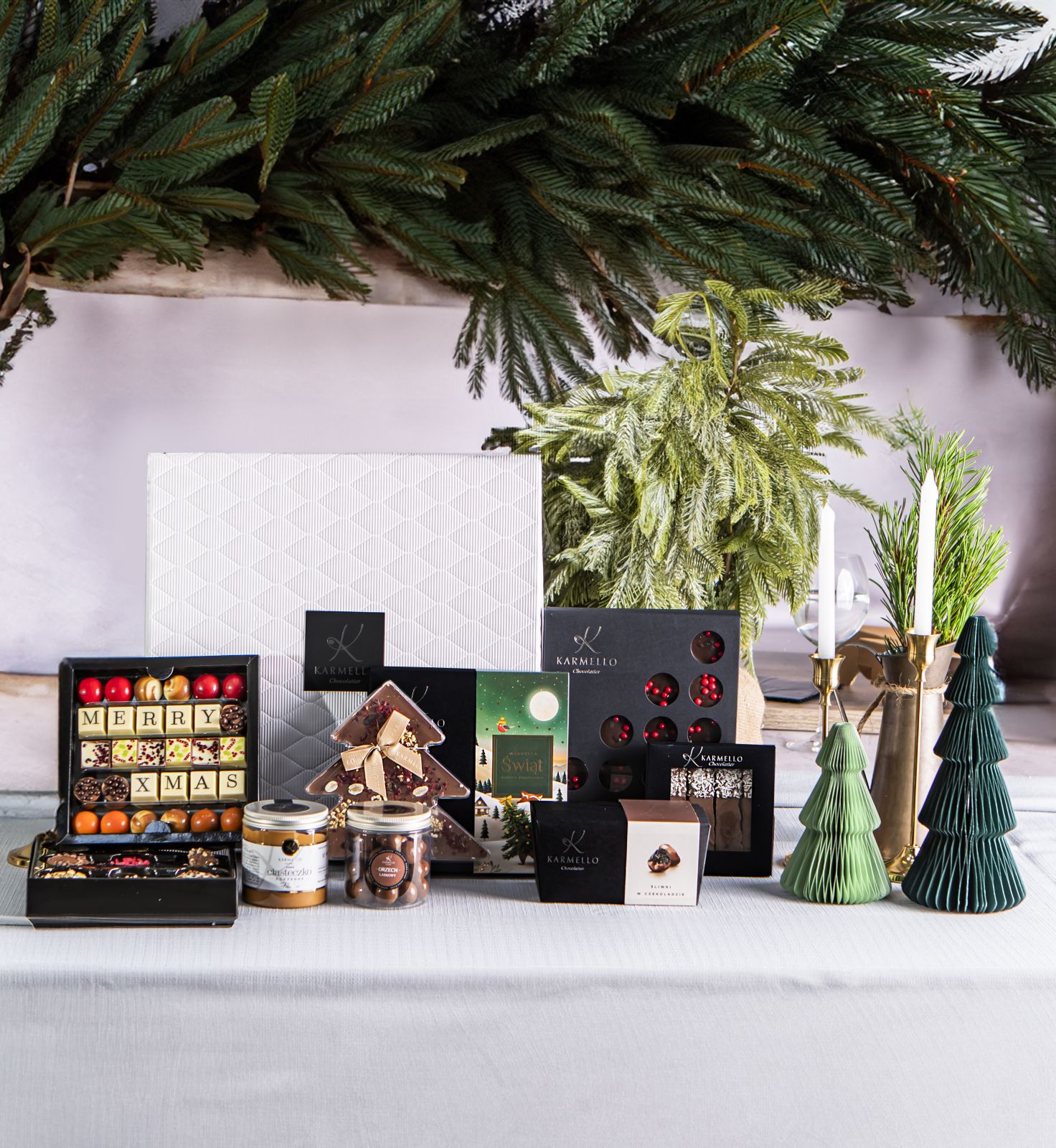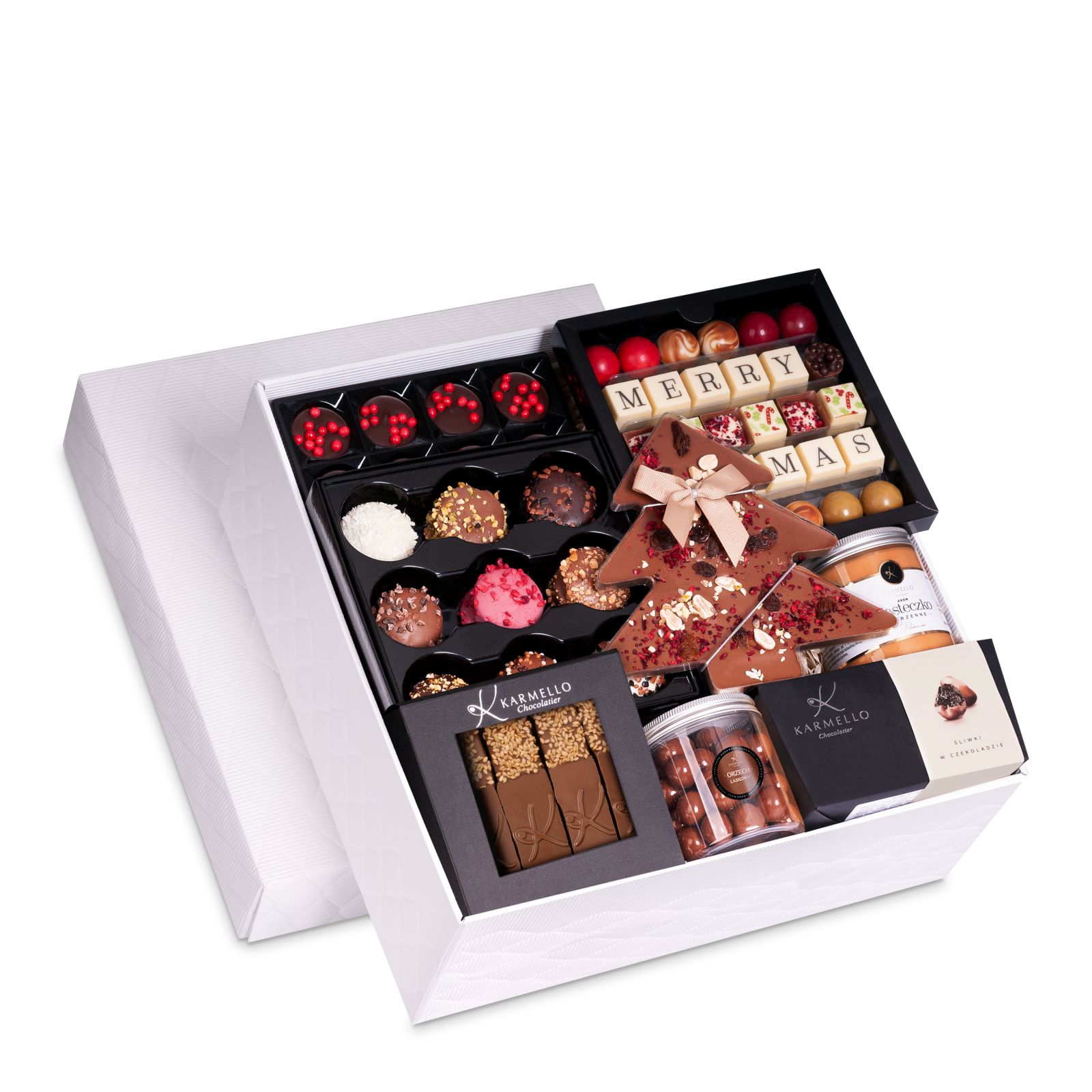 Gigant Merry Xmas to imponujący zestaw stworzony z myślą o wyjątkowych chwilach i wspólnym świętowaniu. To bogata kompozycja, która łączy tradycję z nowoczesnym smakiem. Idealny prezent dla bliskich lub partnerów biznesowych – pełen elegancji, świątecznego nastroju i prawdziwie czekoladowego zachwytu.