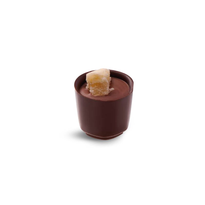 Bogaty w walory smakowe kandyzowany imbir wyostrzający smak ciemnego ganache.