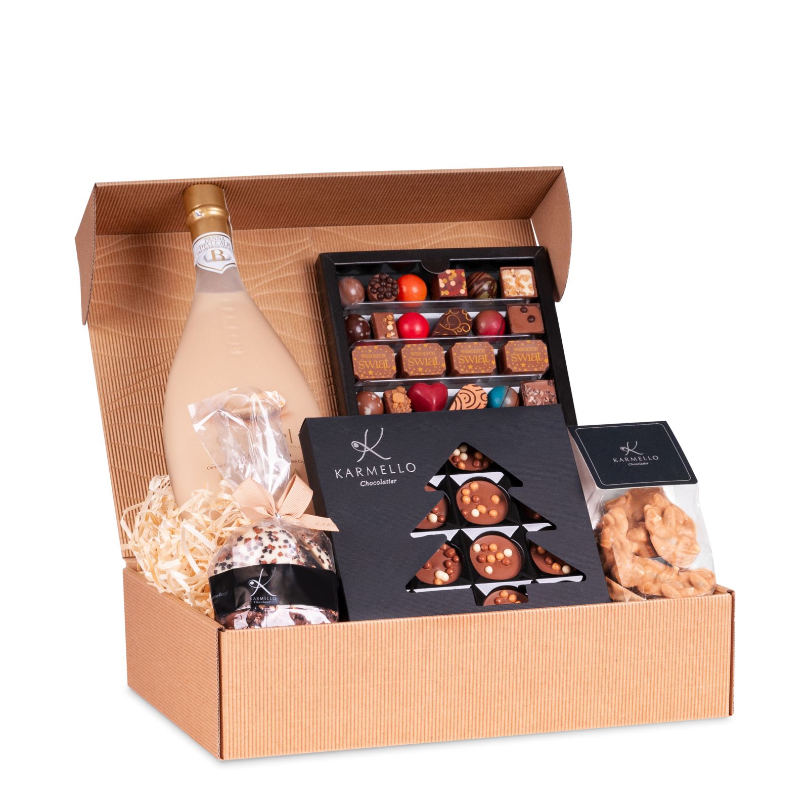 Poniższe słodkie upominki stanowią przykładową, poglądową ofertę, jaką przygotowujemy z myślą o poszczególnych świętach i wydarzeniach okolicznościowych. Za każdym razem, uzupełniamy ją o nowe i jeszcze pyszniejsze pralinki i czekoladki na święta. Zapraszamy do składania zamówień w okresie poprzedzającym konkretne święto bądź szczególną okazję. Jeśli już teraz szukają Państwo pomysłu na słodki upominek - zachęcamy do zapoznania się z czekoladowymi pomysłami na prezent, które znajdują się na stałe w naszej ofercie.