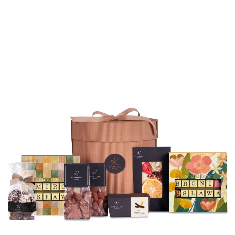 Podaruj Babci i Dziadkowi prawdziwą ucztę słodkości zamkniętą w eleganckim kapeluszniku Karmello. ?