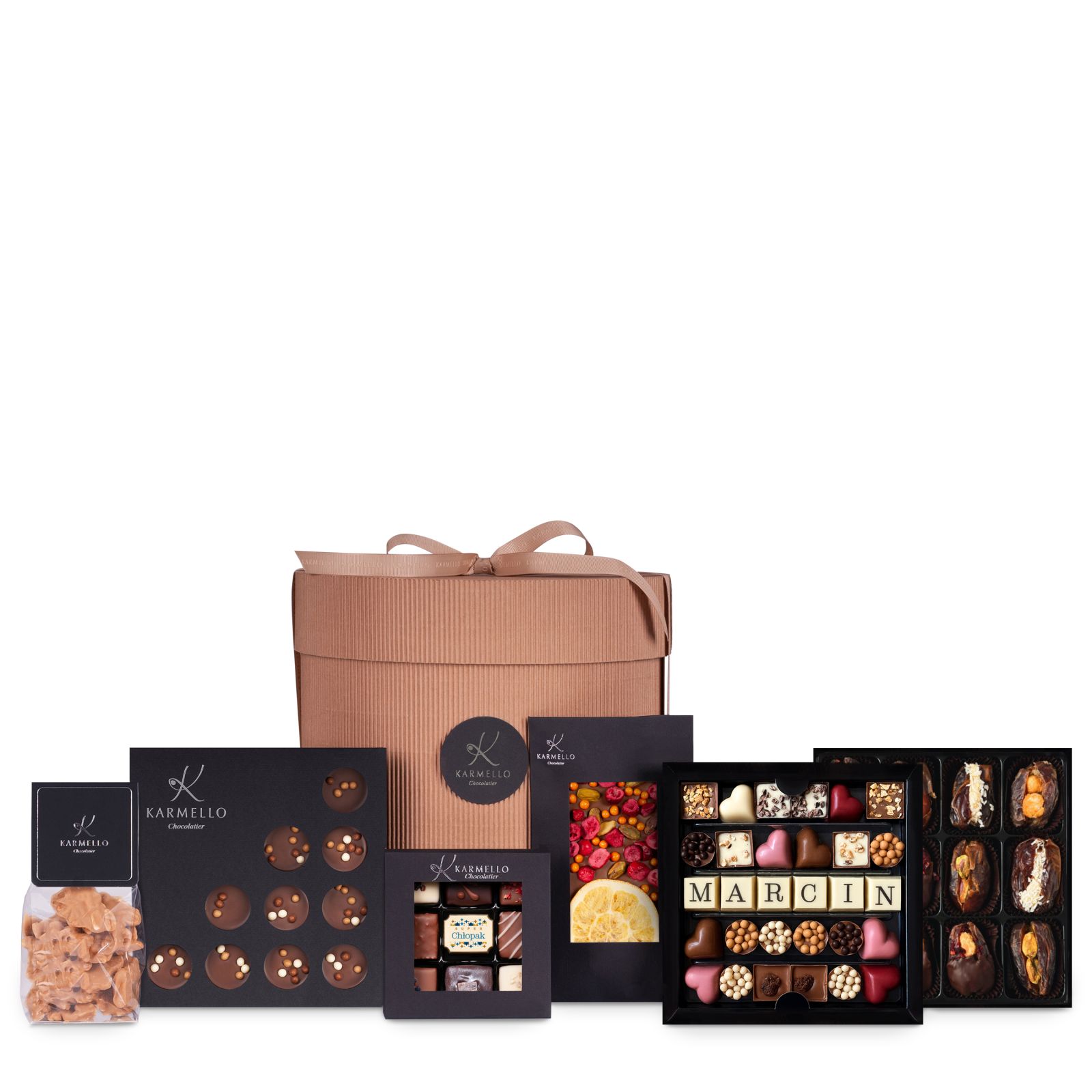 Poniższe słodkie upominki stanowią przykładową, poglądową ofertę, jaką przygotowujemy z myślą o poszczególnych świętach i wydarzeniach okolicznościowych. Za każdym razem, uzupełniamy ją o nowe i jeszcze pyszniejsze pralinki i czekoladki na święta. Zapraszamy do składania zamówień w okresie poprzedzającym konkretne święto bądź szczególną okazję. Jeśli już teraz szukają Państwo pomysłu na słodki upominek - zachęcamy do zapoznania się z czekoladowymi pomysłami na prezent, które znajdują się na stałe w naszej ofercie.