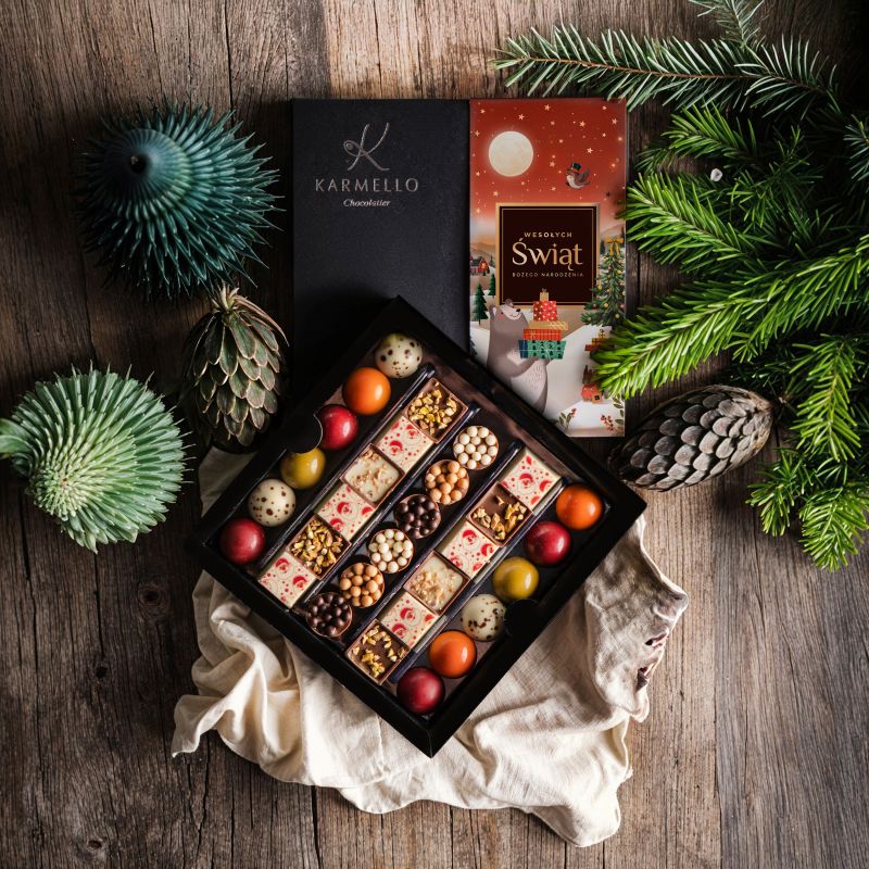 Prezentowana fotografia ma charakter poglądowy – poszczególne zestawy czekoladek mogą różnić się od tych widocznych na zdjęciu.