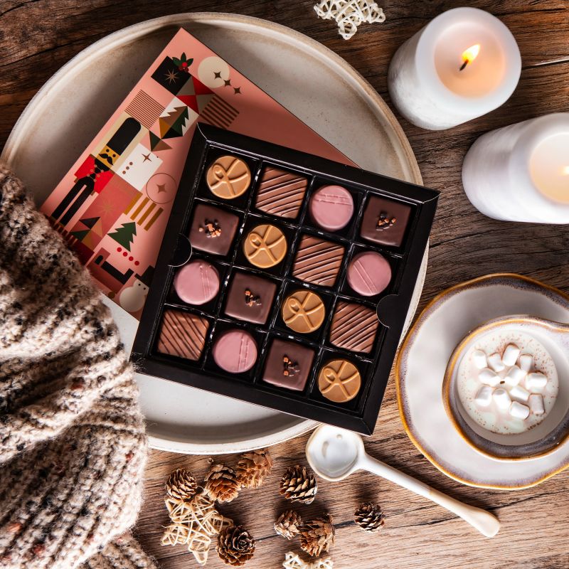 Kolekcja Dziadek do Orzechów to elegancka propozycja, w której wyrafinowane nadzienia spotykają się z aksamitną czekoladą. W zestawie znajdziesz subtelne nuty palonego masła, karmelizowanego banana z cynamonem, delikatny akcent kawowego karmelu oraz ruby z arachidem. To harmonijna kompozycja, która łączy świąteczne inspiracje z klasyczną słodyczą.