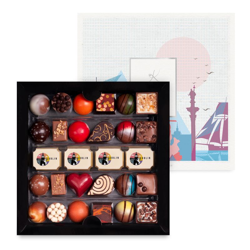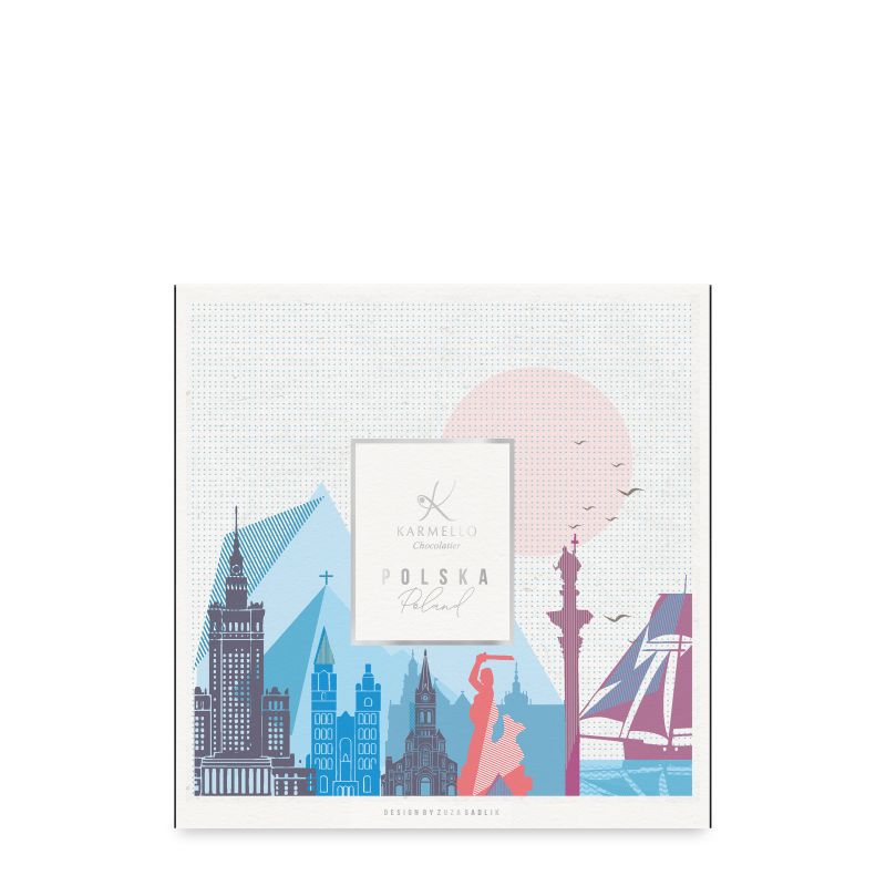 Karmello Standard to zaproszenie do magicznego świata Karmello Chocolatier. Zestaw czekoladek skomponowany w taki sposób, by móc poznać najwybitniejsze smaki naszych wyrobów, zaczynając od subtelnych, orzechowych nut, kończąc na zdecydowanych alkoholowych aromatach. Produkt atrakcyjny zarówno wizualnie, jak i smakowo. Zestaw zawiera dodatkowo opaskę „Polska” i czekoladki z napisem „Lublin”.