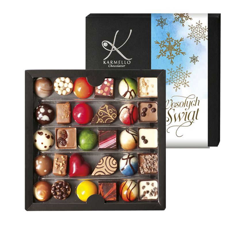 Poniższe słodkie upominki stanowią przykładową, poglądową ofertę, jaką przygotowujemy z myślą o poszczególnych świętach i wydarzeniach okolicznościowych. Za każdym razem, uzupełniamy ją o nowe i jeszcze pyszniejsze pralinki i czekoladki na święta. Zapraszamy do składania zamówień w okresie poprzedzającym konkretne święto bądź szczególną okazję. Jeśli już teraz szukają Państwo pomysłu na słodki upominek - zachęcamy do zapoznania się z czekoladowymi pomysłami na prezent, które znajdują się na stałe w naszej ofercie.