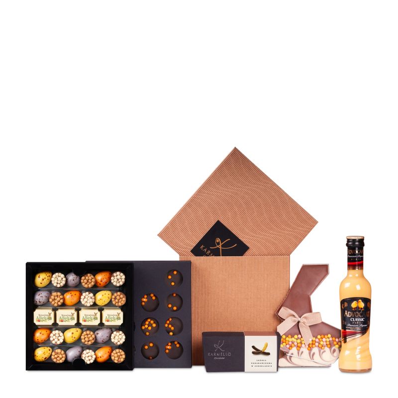 Rozkoszuj się wyjątkowym doświadczeniem smakowym z naszym neseserem, który stanowi doskonałe połączenie dla prawdziwych koneserów. W zestawie znajdziesz wyjątkowy wielkanocny zestaw czekoladek, które zaspokoją nawet najbardziej wyrafinowane podniebienia, a specjały Karmello dopełnią tę słodką kompozycję. Nowoczesna obudowa z praktycznym uchwytem sprawia, że wręczenie tego podarunku jest nie tylko łatwe, ale i stylowe.