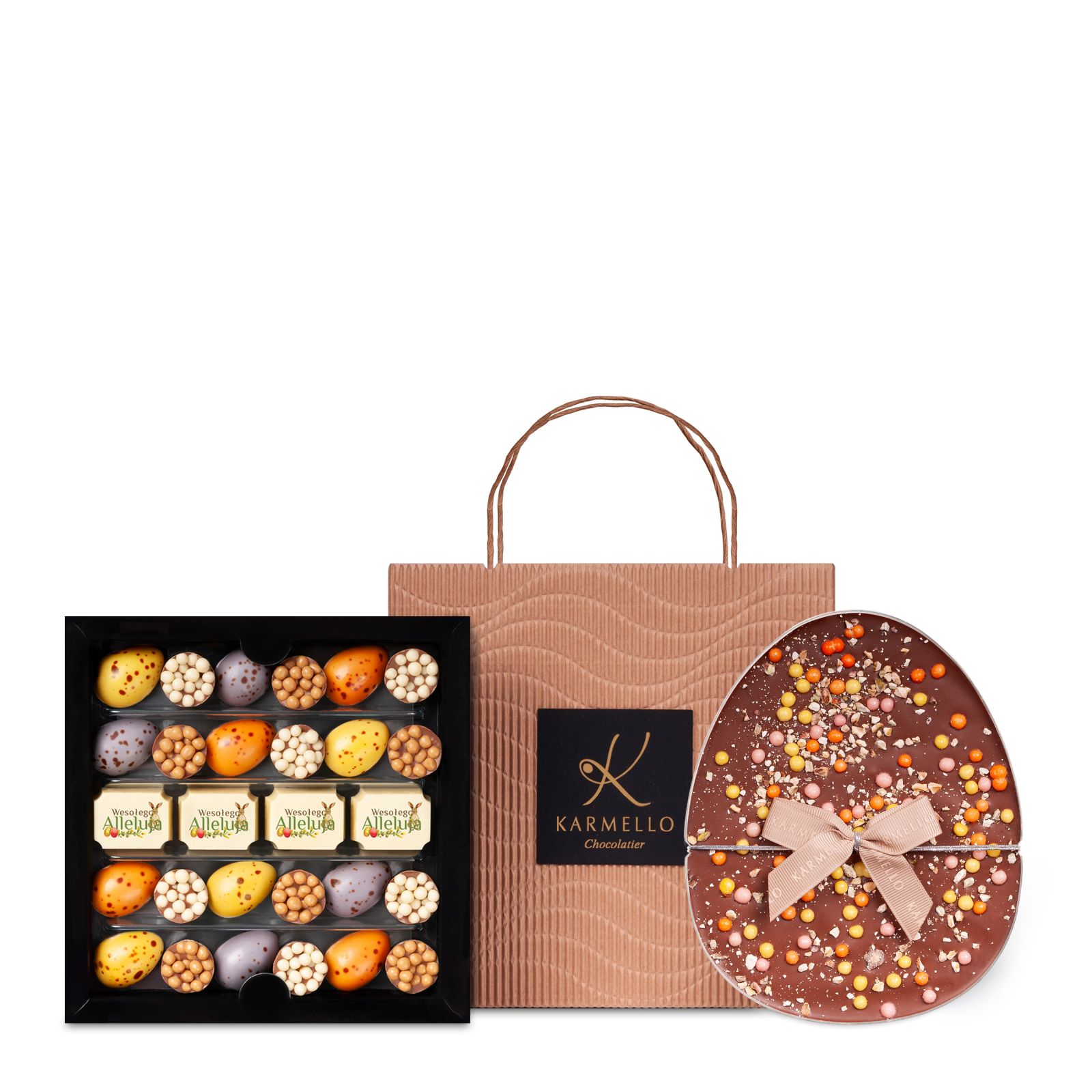 Odkryj unikalną słodycz, która będzie doskonałym dodatkiem do świątecznych celebracji! Nasza torebka z czekoladą w kształcie jajka to prawdziwa gratka dla miłośników słodkości. Wykonana z najwyższej jakości czekolady, idealnie nadaje się na prezent lub jako wyjątkowy element dekoracyjny na wielkanocnym stole. W zestawie znajdziesz również czekoladowe pisanki, które zachwycą nie tylko smakiem, ale i pięknym wyglądem. Każda z pisanek jest starannie wykonana, aby cieszyć oczy oraz podniebienie.