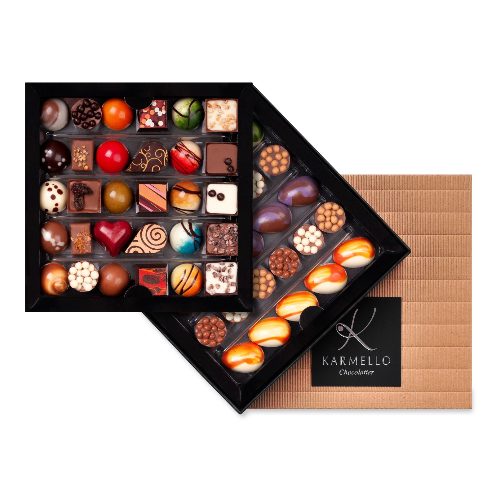 Poniższe słodkie upominki stanowią przykładową, poglądową ofertę, jaką przygotowujemy z myślą o poszczególnych świętach i wydarzeniach okolicznościowych. Za każdym razem, uzupełniamy ją o nowe i jeszcze pyszniejsze pralinki i czekoladki na święta. Zapraszamy do składania zamówień w okresie poprzedzającym konkretne święto bądź szczególną okazję. Jeśli już teraz szukają Państwo pomysłu na słodki upominek - zachęcamy do zapoznania się z czekoladowymi pomysłami na prezent, które znajdują się na stałe w naszej ofercie.
