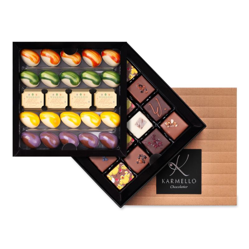 Poniższe słodkie upominki stanowią przykładową, poglądową ofertę, jaką przygotowujemy z myślą o poszczególnych świętach i wydarzeniach okolicznościowych. Za każdym razem, uzupełniamy ją o nowe i jeszcze pyszniejsze pralinki i czekoladki na święta. Zapraszamy do składania zamówień w okresie poprzedzającym konkretne święto bądź szczególną okazję. Jeśli już teraz szukają Państwo pomysłu na słodki upominek - zachęcamy do zapoznania się z czekoladowymi pomysłami na prezent, które znajdują się na stałe w naszej ofercie.