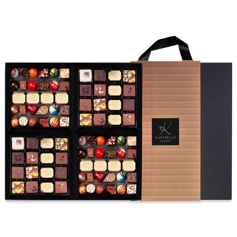 Poniższe słodkie upominki stanowią przykładową, poglądową ofertę, jaką przygotowujemy z myślą o poszczególnych świętach i wydarzeniach okolicznościowych. Za każdym razem, uzupełniamy ją o nowe i jeszcze pyszniejsze pralinki i czekoladki na święta. Zapraszamy do składania zamówień w okresie poprzedzającym konkretne święto bądź szczególną okazję. Jeśli już teraz szukają Państwo pomysłu na słodki upominek - zachęcamy do zapoznania się z czekoladowymi pomysłami na prezent, które znajdują się na stałe w naszej ofercie.