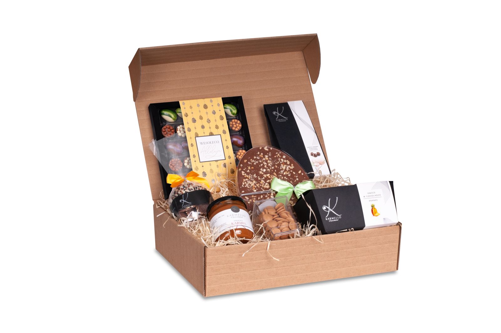 Poniższe słodkie upominki stanowią przykładową, poglądową ofertę, jaką przygotowujemy z myślą o poszczególnych świętach i wydarzeniach okolicznościowych. Za każdym razem, uzupełniamy ją o nowe i jeszcze pyszniejsze pralinki i czekoladki na święta. Zapraszamy do składania zamówień w okresie poprzedzającym konkretne święto bądź szczególną okazję. Jeśli już teraz szukają Państwo pomysłu na słodki upominek - zachęcamy do zapoznania się z czekoladowymi pomysłami na prezent, które znajdują się na stałe w naszej ofercie.