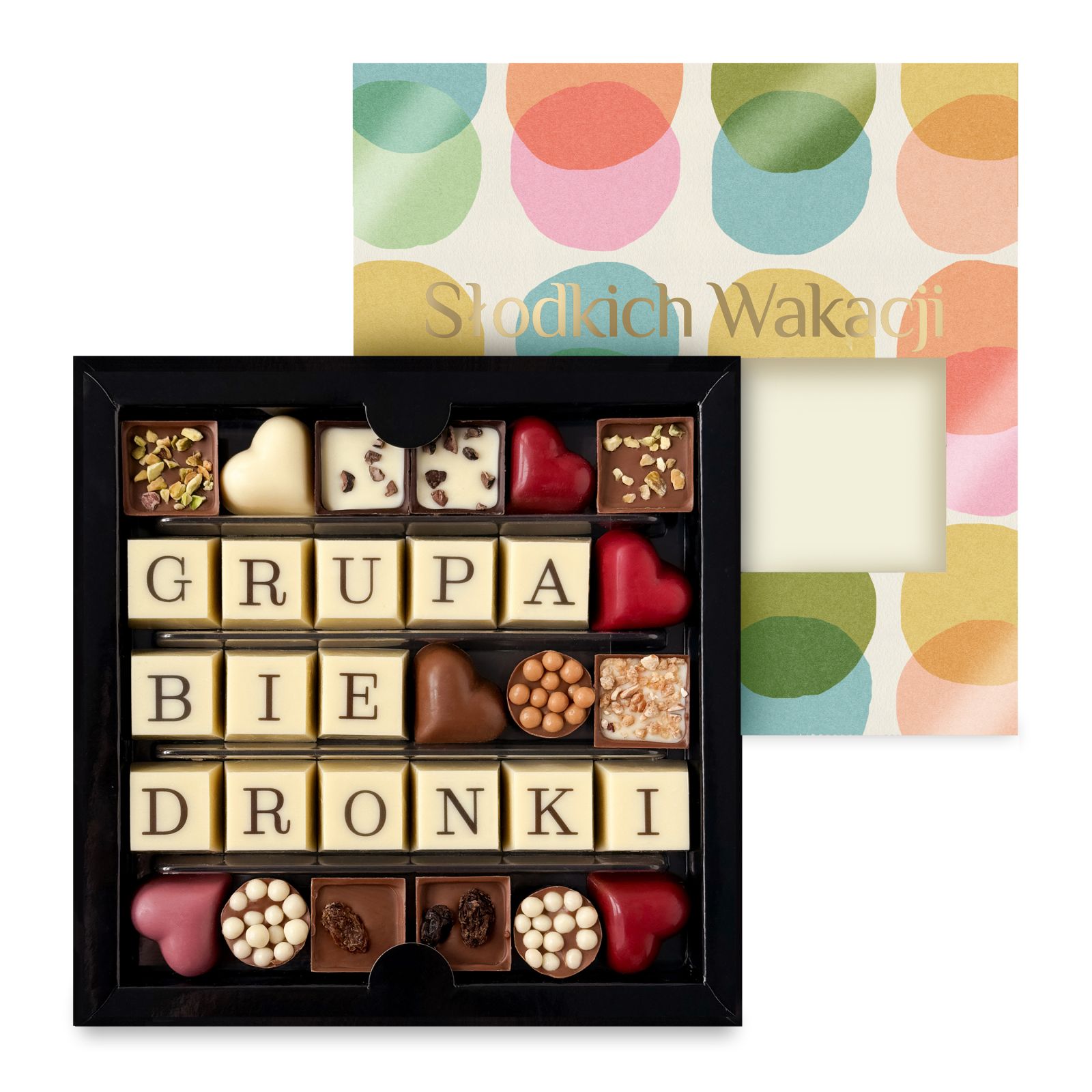 Poniższe słodkie upominki stanowią przykładową, poglądową ofertę, jaką przygotowujemy z myślą o poszczególnych świętach i wydarzeniach okolicznościowych. Za każdym razem, uzupełniamy ją o nowe i jeszcze pyszniejsze pralinki i czekoladki na święta. Zapraszamy do składania zamówień w okresie poprzedzającym konkretne święto bądź szczególną okazję. Jeśli już teraz szukają Państwo pomysłu na słodki upominek - zachęcamy do zapoznania się z czekoladowymi pomysłami na prezent, które znajdują się na stałe w naszej ofercie.