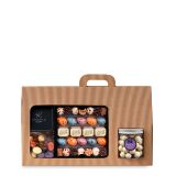 Ten zestaw to mała podróż po smakach – od aksamitnej czekolady, przez lekkie, owocowe nuty, aż po przyjemnie chrupiące akcenty. W środku czekają starannie wyselekcjonowane słodkości, które zaskakują różnorodnością, jakością i dopracowanymi detalami, dzięki czemu każdy kęs smakuje trochę inaczej. Całość zapakowana jest w listonoszkę z przestrzennym okienkiem.