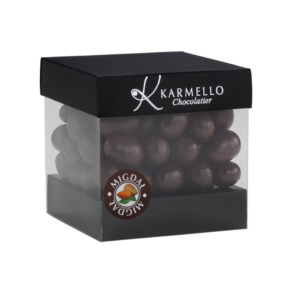 Słodkie, prażone migdały zanurzone w intensywnej w smaku, ciemnej czekoladzie.
