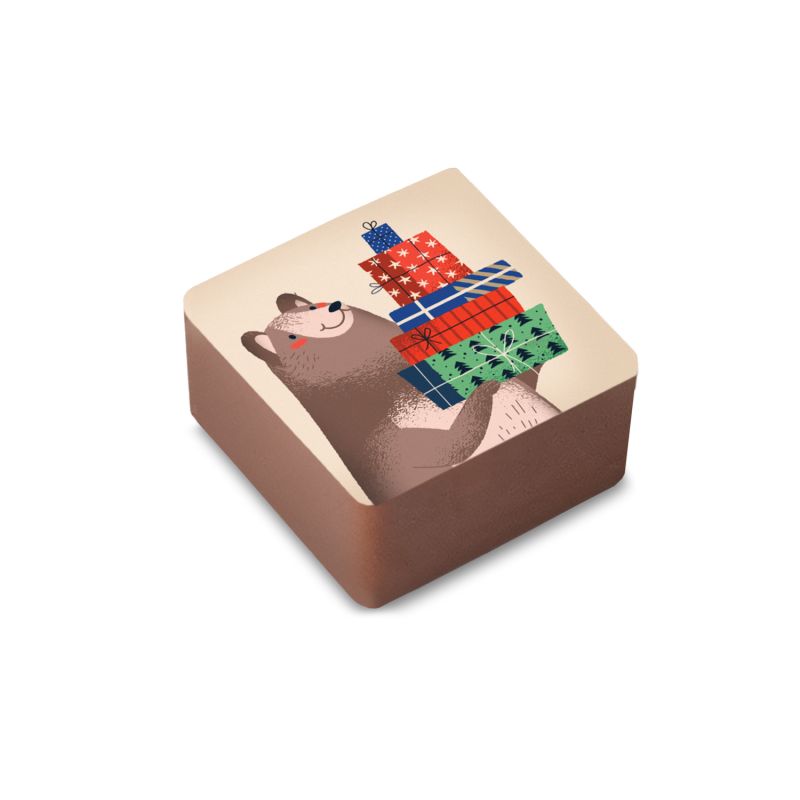 Mleczuś to wyjątkowa czekoladka, która łączy w sobie delikatność mlecznej czekolady z eleganckim nadrukiem na białej czekoladzie.