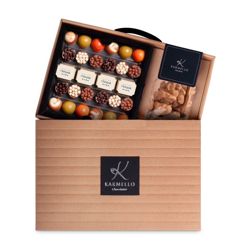 Połączenie zestawu czekoladek skomponowanego specjalnie na Dzień Chłopaka oraz karmelowego clustra to idealny pomysł na prezent. Całość zamknięta w eleganckim opakowaniu neseser.