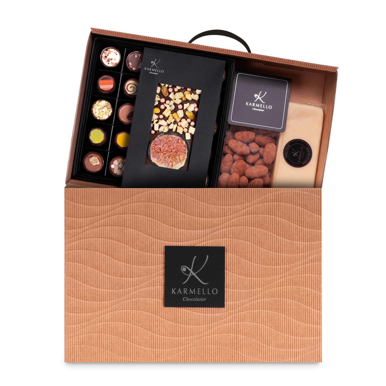 Poniższe słodkie upominki stanowią przykładową, poglądową ofertę, jaką przygotowujemy z myślą o poszczególnych świętach i wydarzeniach okolicznościowych. Za każdym razem, uzupełniamy ją o nowe i jeszcze pyszniejsze pralinki i czekoladki na święta. Zapraszamy do składania zamówień w okresie poprzedzającym konkretne święto bądź szczególną okazję. Jeśli już teraz szukają Państwo pomysłu na słodki upominek - zachęcamy do zapoznania się z czekoladowymi pomysłami na prezent, które znajdują się na stałe w naszej ofercie.
