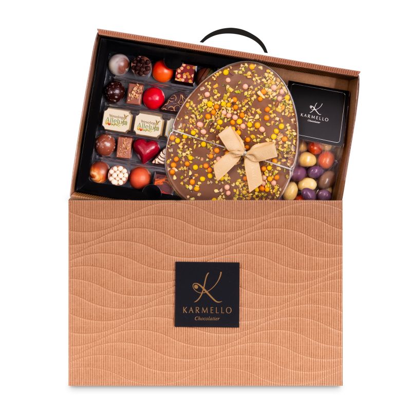 Elegancki zestaw słodkości, pełen różnorodnych smaków i czekoladowych przyjemności, stworzony z myślą o chwili relaksu i odkrywaniu nowych połączeń. Wyjątkowa kompozycja smaków zamknięta w nowoczesnym neseserze.
