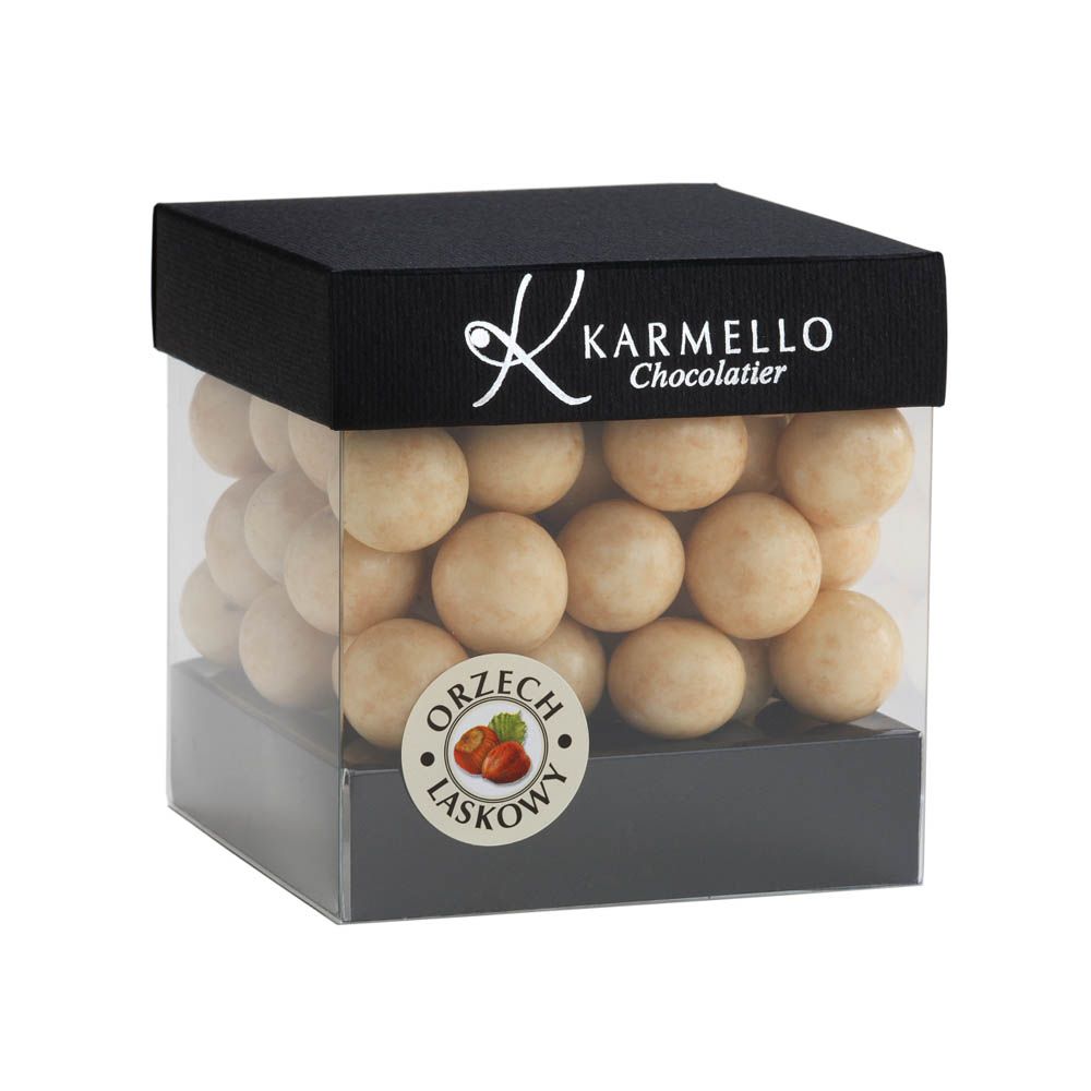 wyśmienity, najwyższej jakości orzech laskowy otulony białą czekoladą.