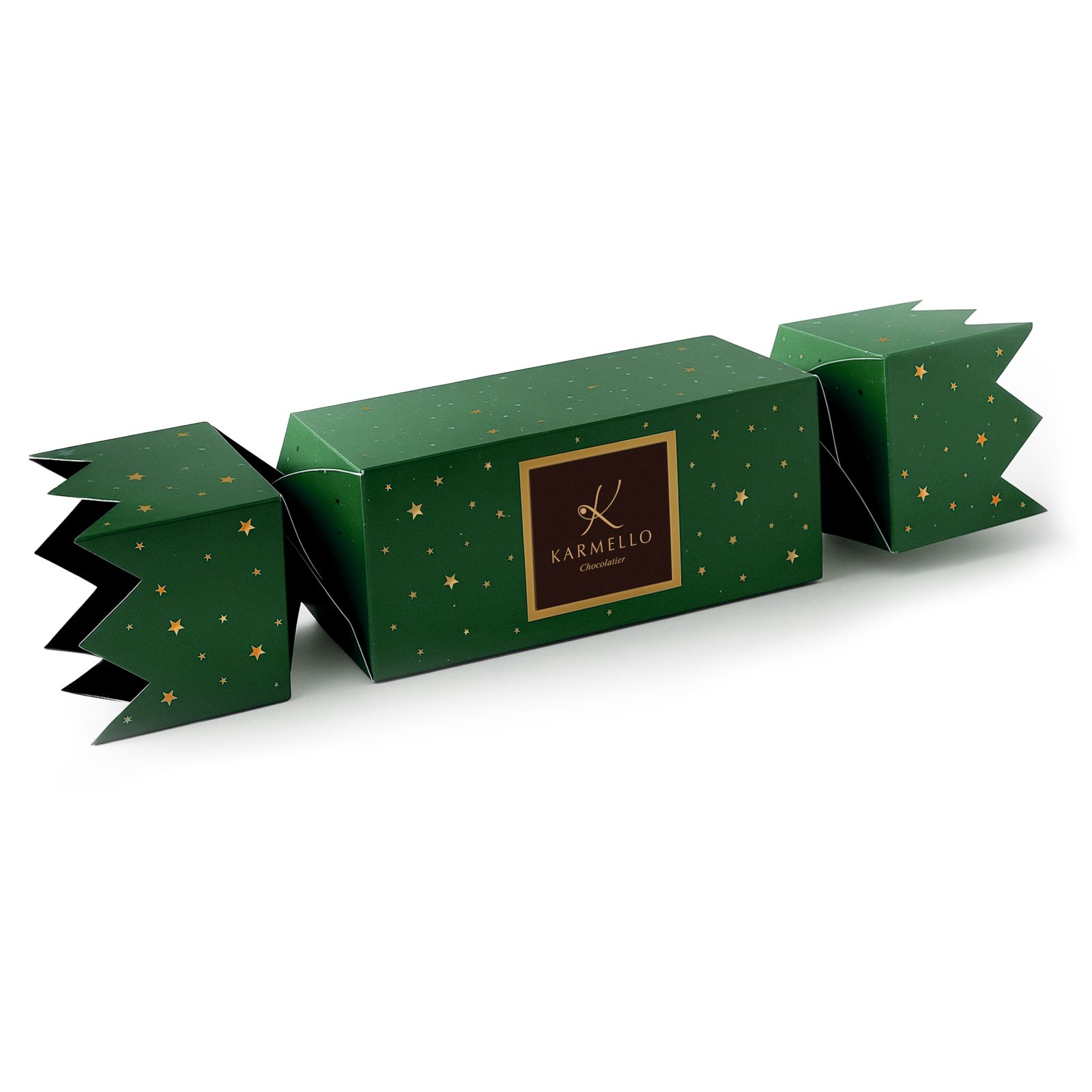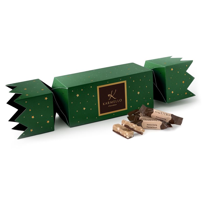 Orzechowy Cracker skrywa w sobie 20 delikatnych pralin z białej czekolady, w których kremowa słodycz splata się z prażonymi orzechami laskowymi i aksamitną czekoladą Gianduja.