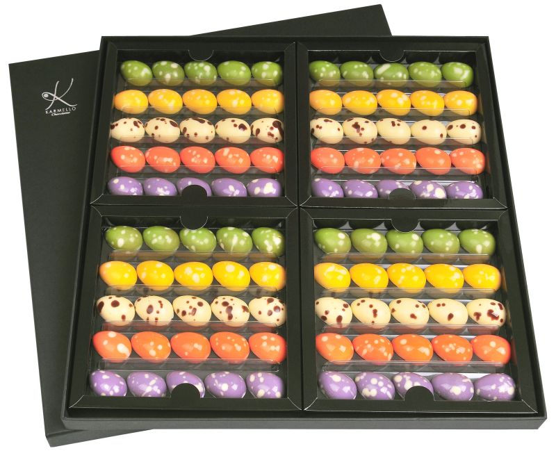 zestaw 100 wykonanych z najwyższą starannością czekoladek. kompozycja ta pozwoli ci zaprosić najbliższych na wyjątkową degustację najdoskonalszych smaków karmello chocolatier w trakcie świątecznych spotkań. czekoladki umieszczone zostały w czterech osobnych pudełeczkach, które zebrane są w eleganckie opakowanie- tak, byś mógł cieszyć się nimi wszystkimi, lub każdym pudełeczkiem z osobna.