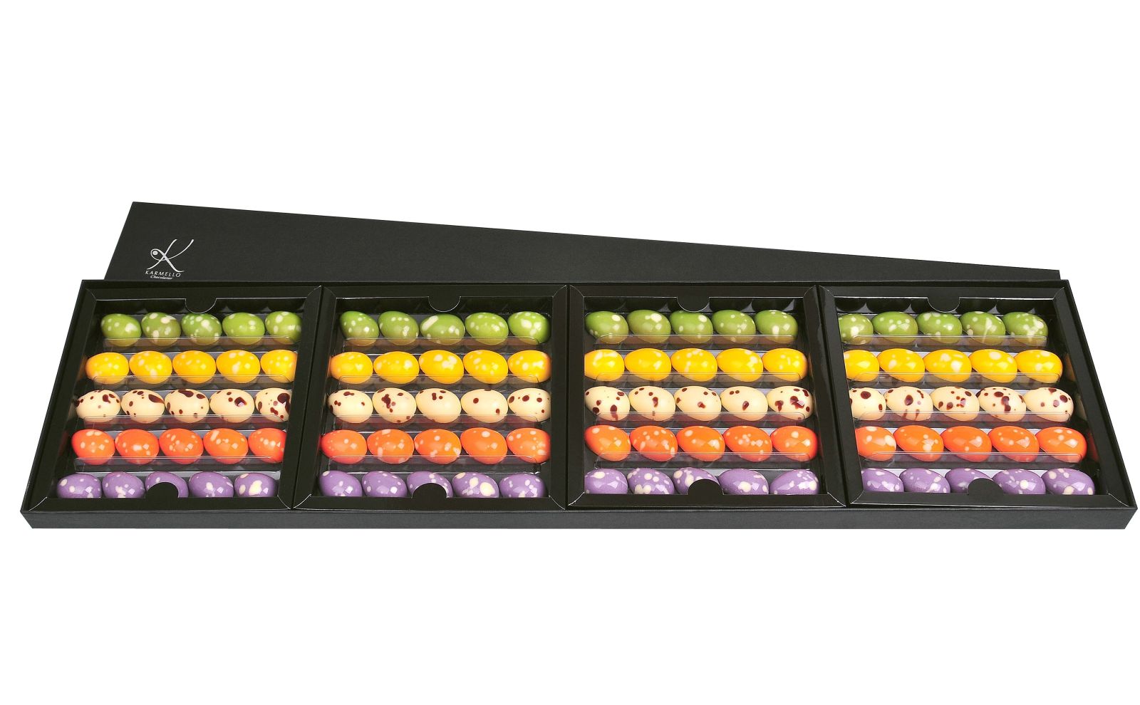 zestaw cieszy wzrok i zaspokaja oczekiwania najbardziej wymagających podniebień. wyjątkowo skomponowane owocowe aromaty oraz niepowtarzalne, kawowe i orzechowe słodkości tworzą zachwycający zestaw. najwyższej jakości czekoladki podkreślone zostały soczystymi barwami, które przywodzą na myśl nadchodzącą wiosnę. produkt idealnie sprawdzi się zarówno jako świąteczny upominek, jak i słodka dekoracja wielkanocnego stołu.