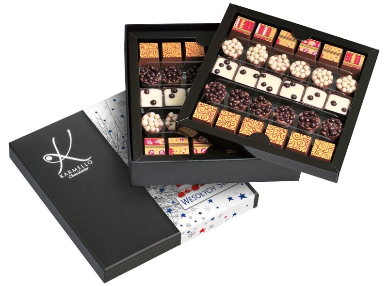 Poniższe słodkie upominki stanowią przykładową, poglądową ofertę, jaką przygotowujemy z myślą o poszczególnych świętach i wydarzeniach okolicznościowych. Za każdym razem, uzupełniamy ją o nowe i jeszcze pyszniejsze pralinki i czekoladki na święta. Zapraszamy do składania zamówień w okresie poprzedzającym konkretne święto bądź szczególną okazję. Jeśli już teraz szukają Państwo pomysłu na słodki upominek - zachęcamy do zapoznania się z czekoladowymi pomysłami na prezent, które znajdują się na stałe w naszej ofercie.