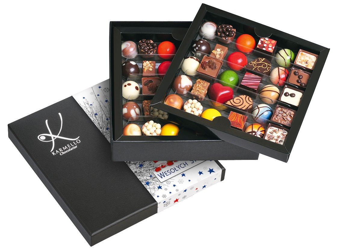 Poniższe słodkie upominki stanowią przykładową, poglądową ofertę, jaką przygotowujemy z myślą o poszczególnych świętach i wydarzeniach okolicznościowych. Za każdym razem, uzupełniamy ją o nowe i jeszcze pyszniejsze pralinki i czekoladki na święta. Zapraszamy do składania zamówień w okresie poprzedzającym konkretne święto bądź szczególną okazję. Jeśli już teraz szukają Państwo pomysłu na słodki upominek - zachęcamy do zapoznania się z czekoladowymi pomysłami na prezent, które znajdują się na stałe w naszej ofercie.