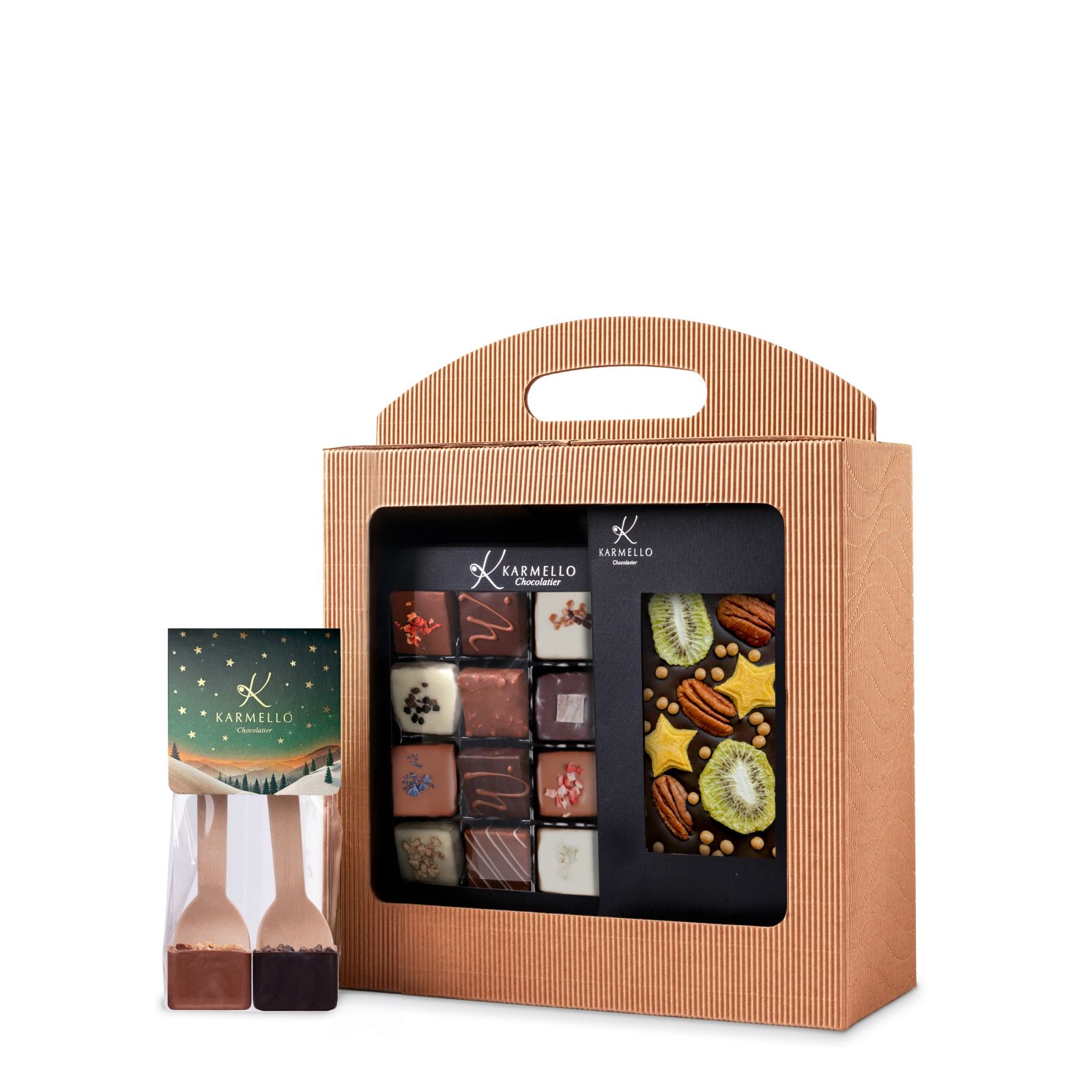 Prezentownik z pralinami to świąteczny gest pełen elegancji i czekoladowej przyjemności.