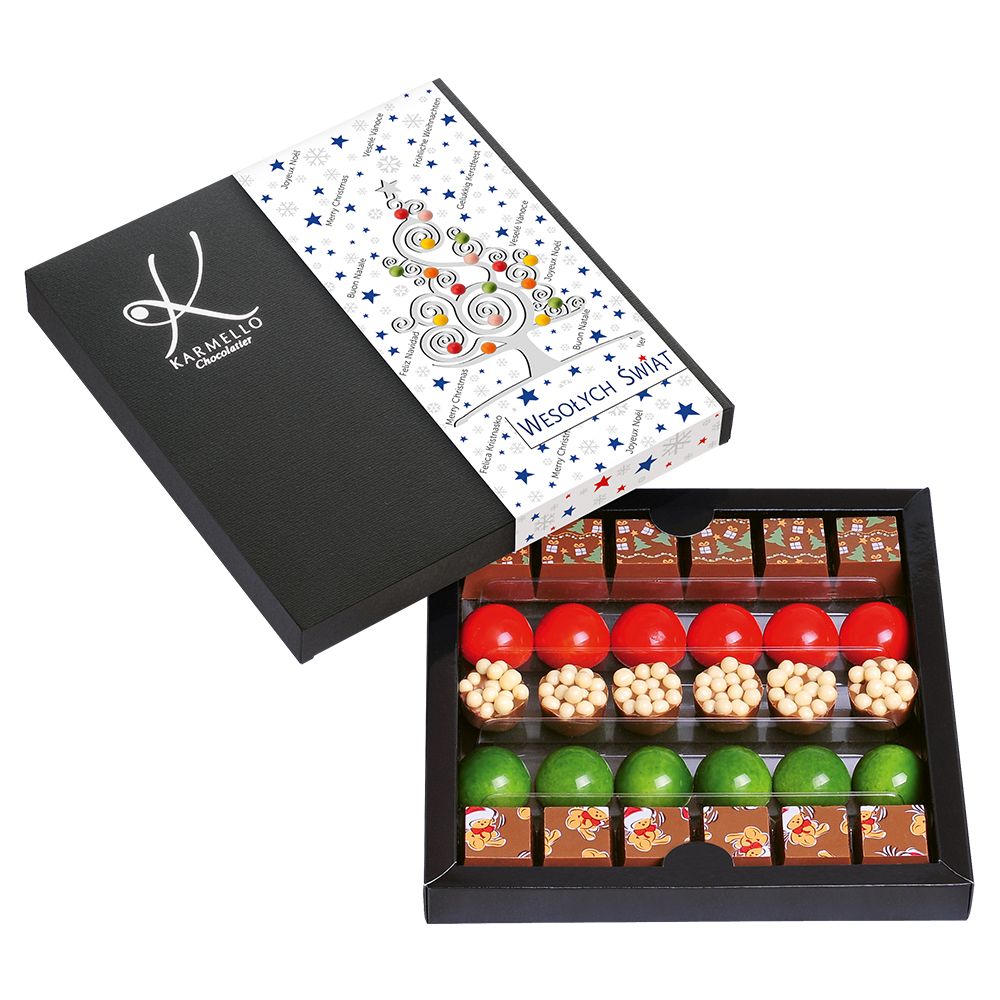 Poniższe słodkie upominki stanowią przykładową, poglądową ofertę, jaką przygotowujemy z myślą o poszczególnych świętach i wydarzeniach okolicznościowych. Za każdym razem, uzupełniamy ją o nowe i jeszcze pyszniejsze pralinki i czekoladki na święta. Zapraszamy do składania zamówień w okresie poprzedzającym konkretne święto bądź szczególną okazję. Jeśli już teraz szukają Państwo pomysłu na słodki upominek - zachęcamy do zapoznania się z czekoladowymi pomysłami na prezent, które znajdują się na stałe w naszej ofercie.