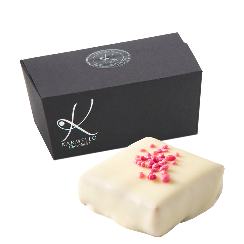 Jedwabiste, śmietankowe nadzienie połączone z subtelnym różanym aromatem w towarzystwie białej czekolady.