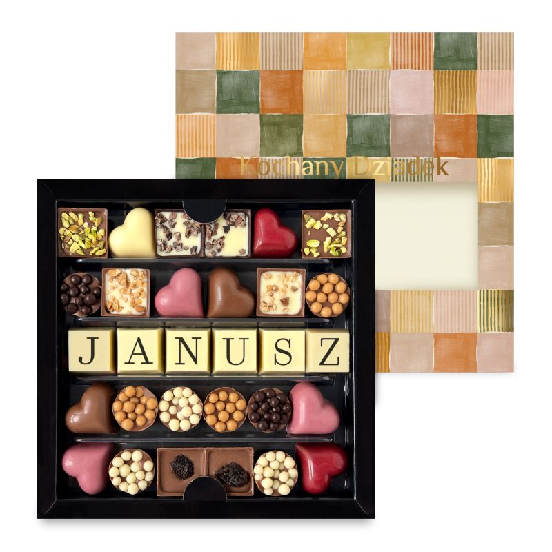 W eleganckim opakowaniu czeka kompozycja starannie dobranych czekoladek — różnorodnych w smaku, harmonijnych w odbiorze i pełnych tej wyjątkowej słodyczy, którą Dziadkowie potrafią docenić jak nikt inny. To drobny upominek, który porusza już samą personalizacją i zamienia jego dzień w ciepłą, celebracyjną chwilę.