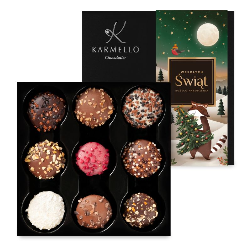 Prezentowana fotografia ma charakter poglądowy – poszczególne zestawy czekoladek mogą różnić się od tych widocznych na zdjęciu.