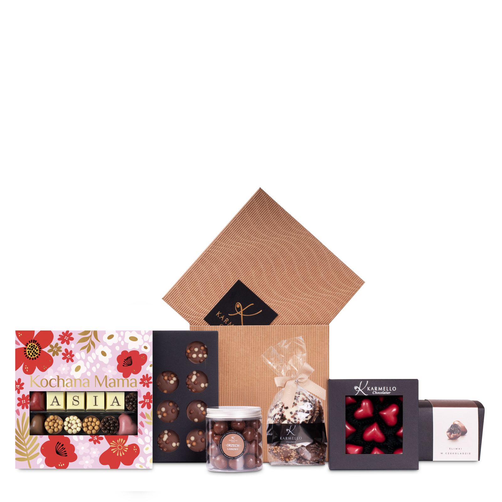 Dzień Matki to wyjątkowa okazja, aby wyrazić miłość. W ramach tego szczególnego dnia przygotowaliśmy dla Ciebie niepowtarzalny zestaw z imieniem, który będzie niezapomnianym upominkiem dla każdej mamy. W zestawie znajdziesz ręcznie wyrabiane czekoladki, fruzzle oraz ciasteczka studenckie – wszystko starannie wyselekcjonowane i pełne smaku. Całość zapakowana w eleganckie, sześcienne opakowanie, które doda uroku prezentowi i podkreśli jego wyjątkowość. Podaruj bliskim chwilę słodkiej radości i spraw, aby ten dzień był pełen uśmiechu i miłości!