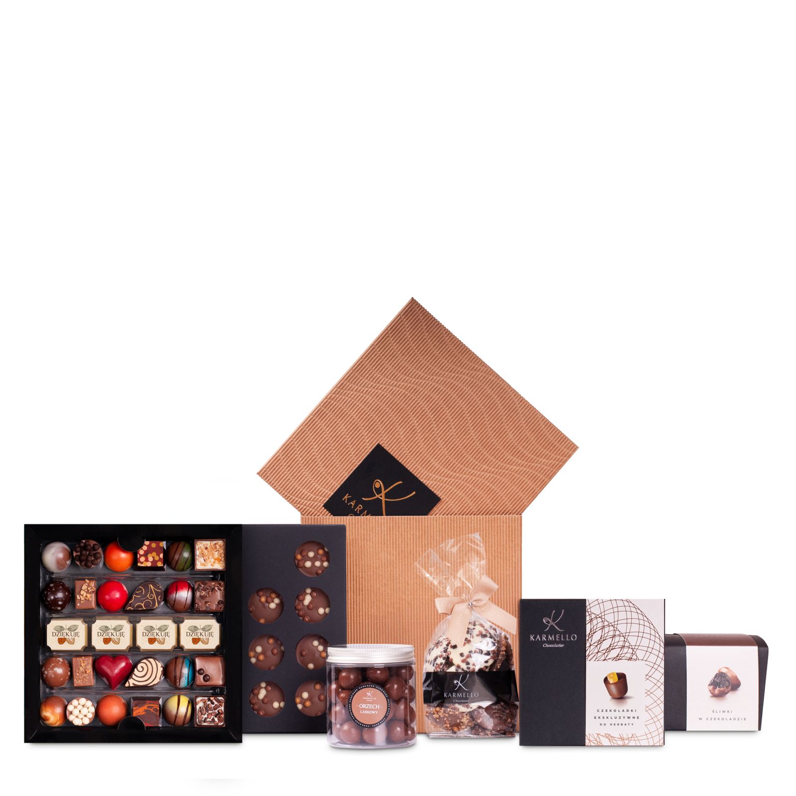 Elegancki zestaw pełen czekoladowych przysmaków Karmello – idealny podarunek na Dzień Nauczyciela. Starannie skomponowane słodkości pozwolą obdarowanemu nauczycielowi udać się w wyjątkową, smakowitą podróż po świecie Karmello Chocolatier.
