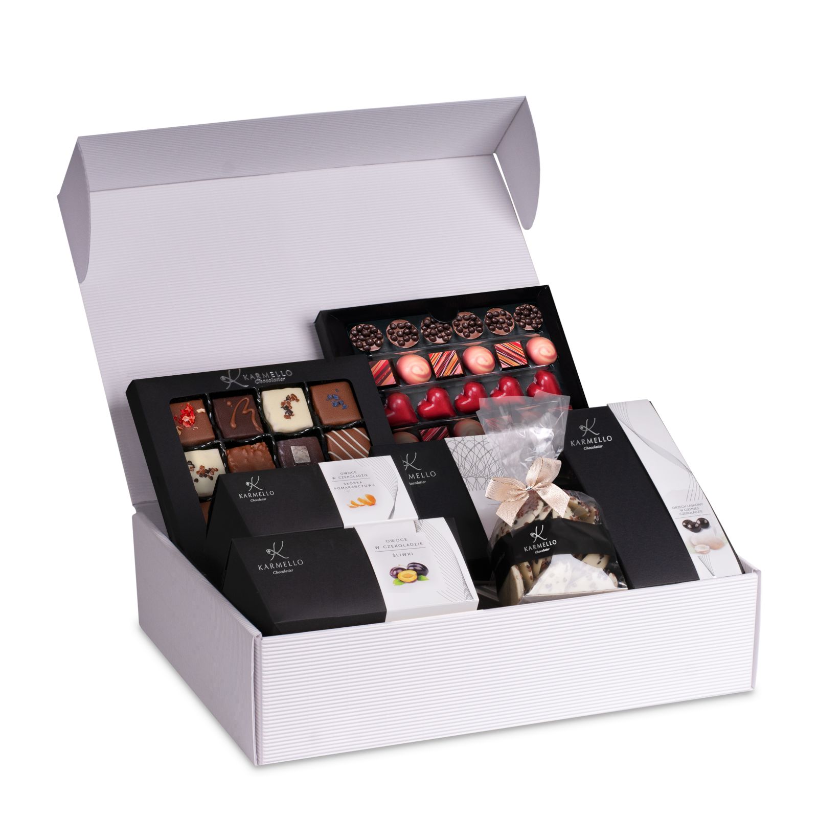 Poniższe słodkie upominki stanowią przykładową, poglądową ofertę, jaką przygotowujemy z myślą o poszczególnych świętach i wydarzeniach okolicznościowych. Za każdym razem, uzupełniamy ją o nowe i jeszcze pyszniejsze pralinki i czekoladki na święta. Zapraszamy do składania zamówień w okresie poprzedzającym konkretne święto bądź szczególną okazję. Jeśli już teraz szukają Państwo pomysłu na słodki upominek - zachęcamy do zapoznania się z czekoladowymi pomysłami na prezent, które znajdują się na stałe w naszej ofercie.