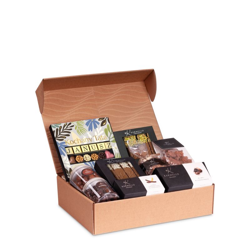 W jej wnętrzu znajdziesz czekoladki ozdobione imieniem Twojego taty, eleganckie sztabki dubajskie oraz inne wyselekcjonowane przysmaki, które podkreślą jego wyjątkowy charakter i sprawią, że ten dzień będzie naprawdę niezapomniany. To idealny gest pełen wdzięczności, dumy i słodkich chwil!