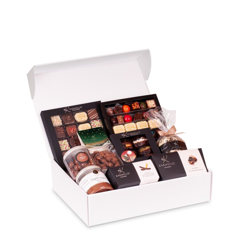 Poniższe słodkie upominki stanowią przykładową, poglądową ofertę, jaką przygotowujemy z myślą o poszczególnych świętach i wydarzeniach okolicznościowych. Za każdym razem, uzupełniamy ją o nowe i jeszcze pyszniejsze pralinki i czekoladki na święta. Zapraszamy do składania zamówień w okresie poprzedzającym konkretne święto bądź szczególną okazję. Jeśli już teraz szukają Państwo pomysłu na słodki upominek - zachęcamy do zapoznania się z czekoladowymi pomysłami na prezent, które znajdują się na stałe w naszej ofercie.