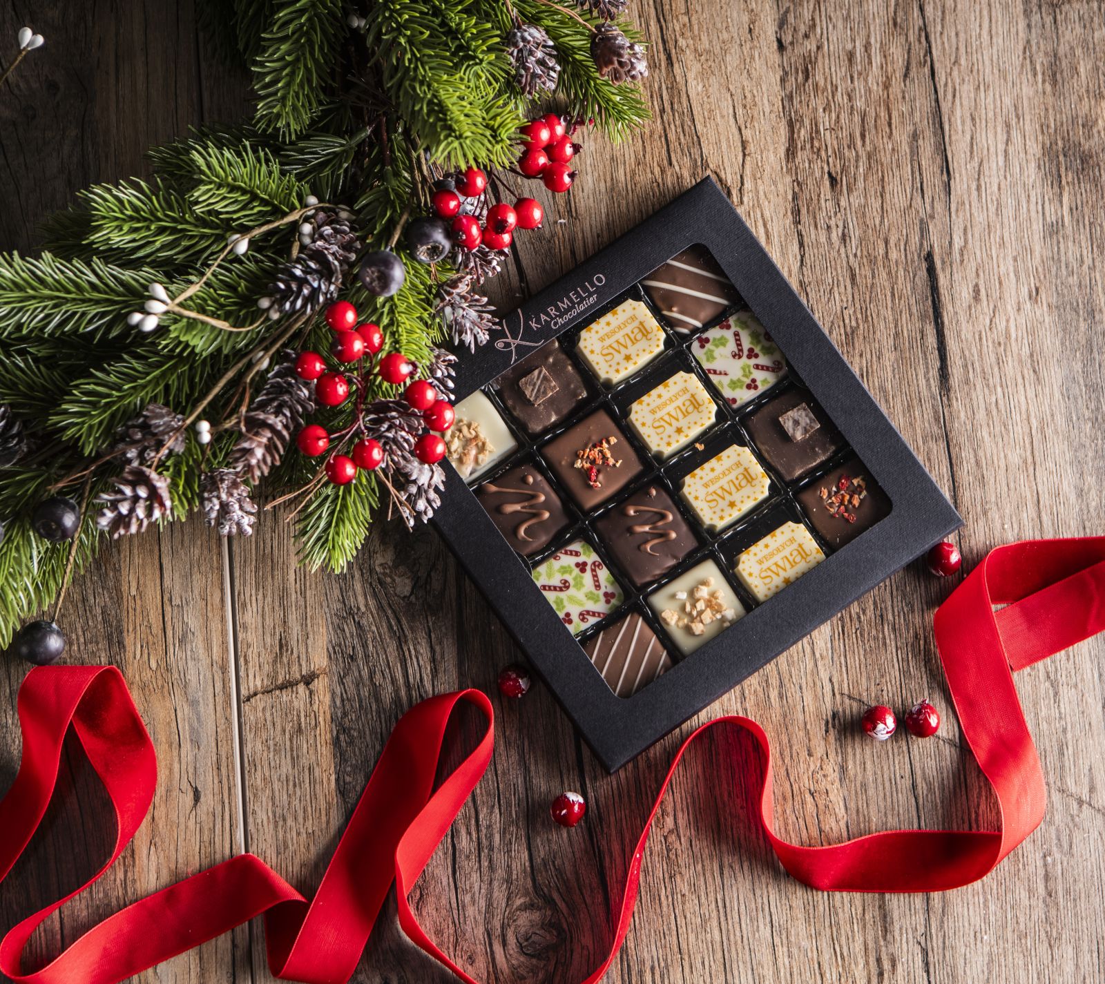 Prezentowana fotografia ma charakter poglądowy – poszczególne zestawy czekoladek mogą różnić się od tych widocznych na zdjęciu.