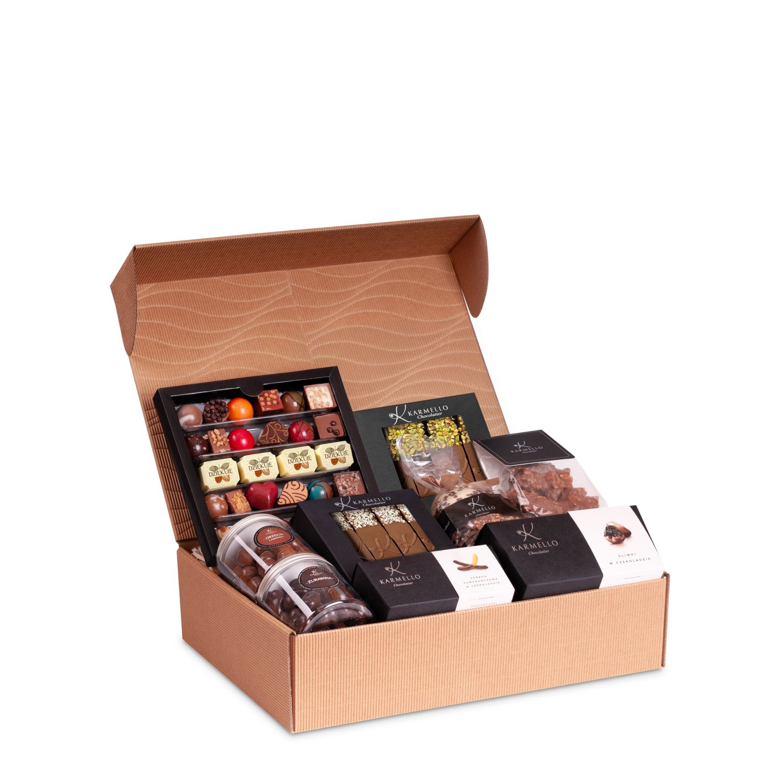 Poniższe słodkie upominki stanowią przykładową, poglądową ofertę, jaką przygotowujemy z myślą o poszczególnych świętach i wydarzeniach okolicznościowych. Za każdym razem, uzupełniamy ją o nowe i jeszcze pyszniejsze pralinki i czekoladki na święta. Zapraszamy do składania zamówień w okresie poprzedzającym konkretne święto bądź szczególną okazję. Jeśli już teraz szukają Państwo pomysłu na słodki upominek - zachęcamy do zapoznania się z czekoladowymi pomysłami na prezent, które znajdują się na stałe w naszej ofercie.