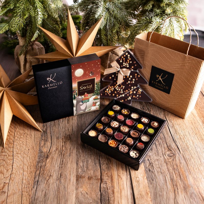 Prezentowana fotografia ma charakter poglądowy – poszczególne zestawy czekoladek mogą różnić się od tych widocznych na zdjęciu.