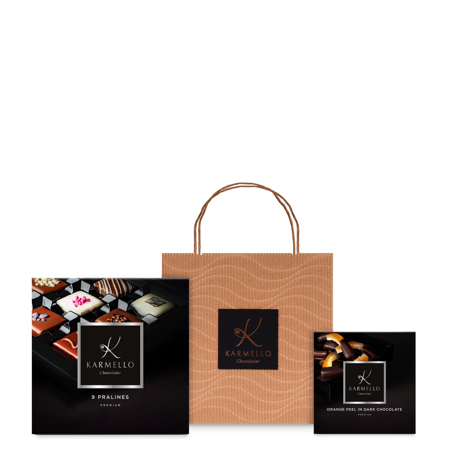 Wyjątkowe połączenie klasyki i świeżości. Ręcznie wykonane praliny zachwycają różnorodnością smaków i elegancją formy, a skórka pomarańczowa w czekoladzie wnosi subtelny, cytrusowy akcent. Zestaw, który łączy w sobie harmonię, aromat i wyrafinowany styl – idealny dla koneserów czekoladowych doznań.