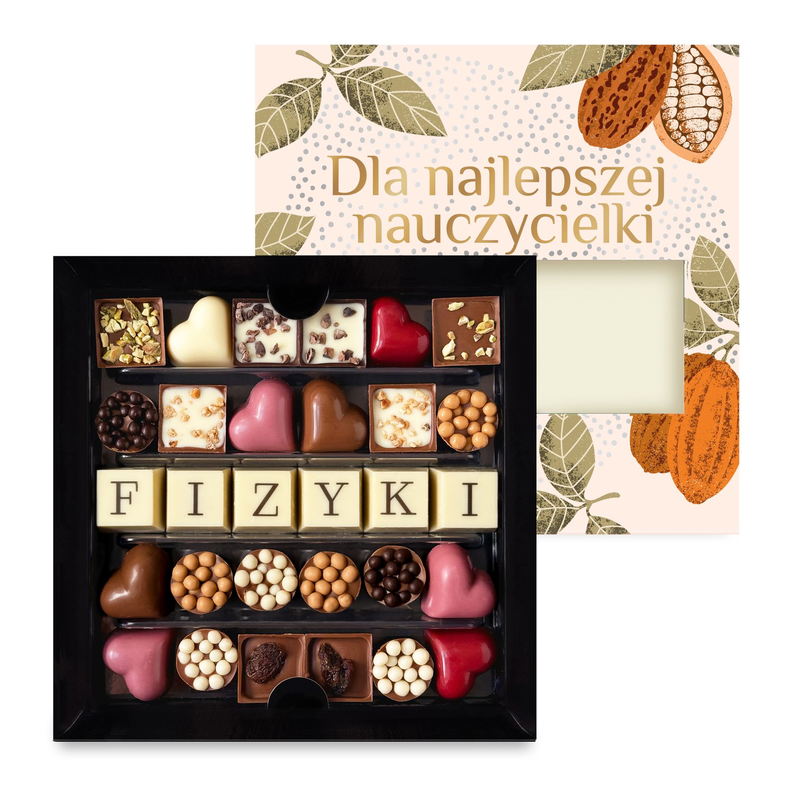 Elegancki zestaw przygotowany specjalnie na Dzień Nauczyciela. Personalizowany napis sprawia, że prezent nabiera wyjątkowego charakteru, a ręcznie tworzona czekoladka z belgijskiej czekolady zamienia się w słodki symbol wdzięczności. Całość zapakowana została w stylową, elegancką torebkę, gotową do wręczenia – bez dodatkowych przygotowań. To subtelny i pełen klasy sposób, by powiedzieć „dziękuję”.