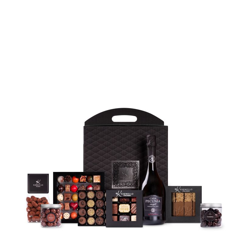 Walizka „Szampańskie Tango” to luksusowy zestaw pełen elegancji i wykwintnych smaków. W środku znajduje się butelka prosecco, wyśmienity zestaw czekoladek, bakalie w czekoladzie oraz inne słodkie przysmaki. Całość zapakowana w stylową walizkę z wygodnym uchwytem, dzięki czemu prezent jest gotowy do wręczenia od razu – elegancki, praktyczny i pełen klasy.