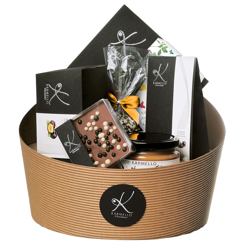 święta to czas spotkań z rodziną i przyjaciółmi. kompozycja różnorodnych produktów karmello w eleganckim opakowaniu to idealny upominek na niezobowiązujące, jak i bardziej uroczyste świąteczne chwile.