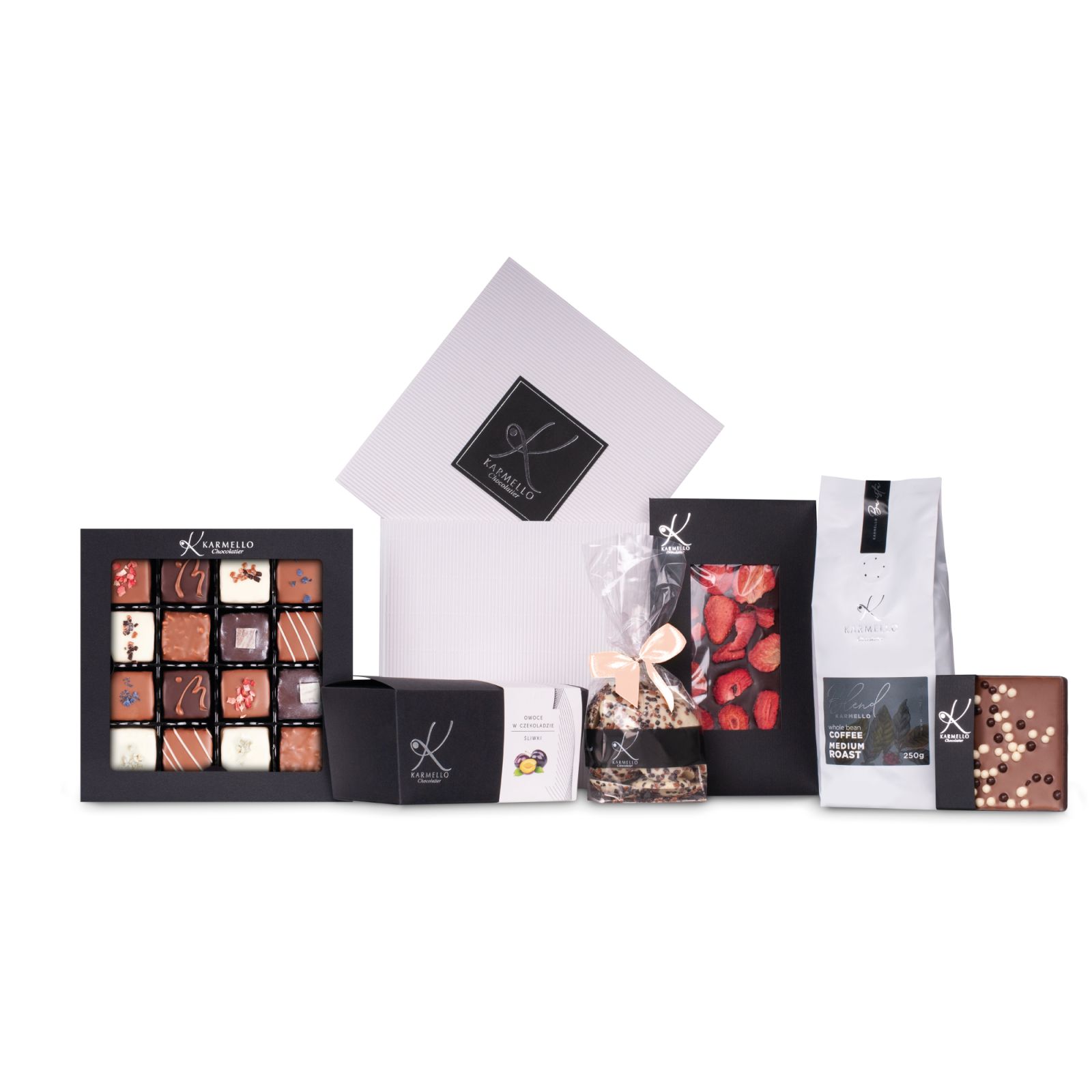 Poniższe słodkie upominki stanowią przykładową, poglądową ofertę, jaką przygotowujemy z myślą o poszczególnych świętach i wydarzeniach okolicznościowych. Za każdym razem, uzupełniamy ją o nowe i jeszcze pyszniejsze pralinki i czekoladki na święta. Zapraszamy do składania zamówień w okresie poprzedzającym konkretne święto bądź szczególną okazję. Jeśli już teraz szukają Państwo pomysłu na słodki upominek - zachęcamy do zapoznania się z czekoladowymi pomysłami na prezent, które znajdują się na stałe w naszej ofercie.